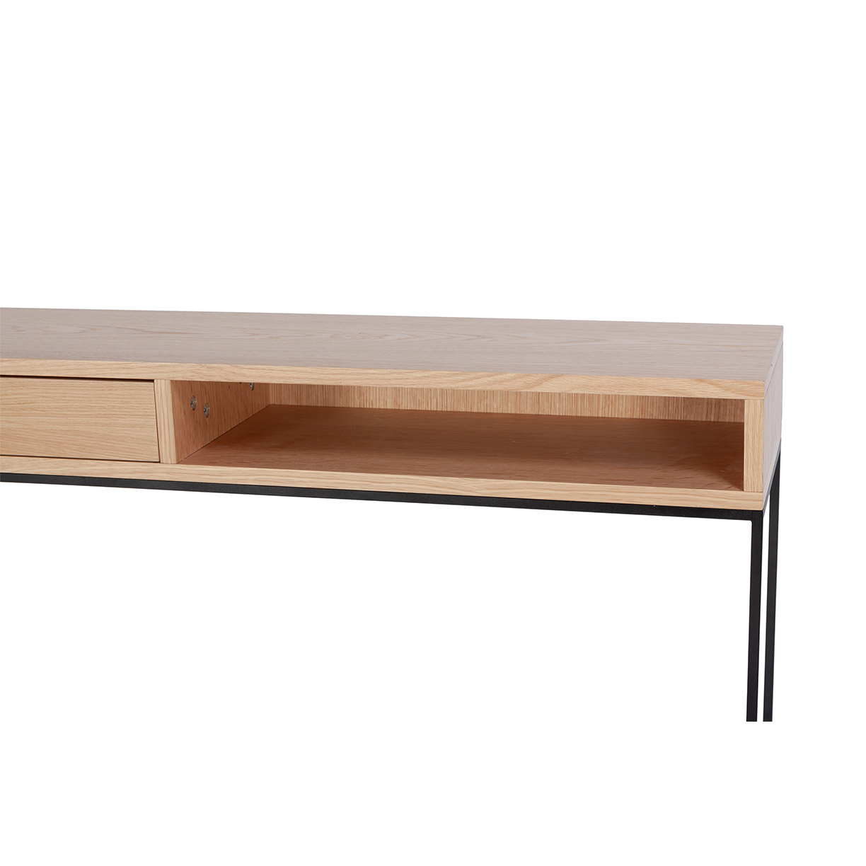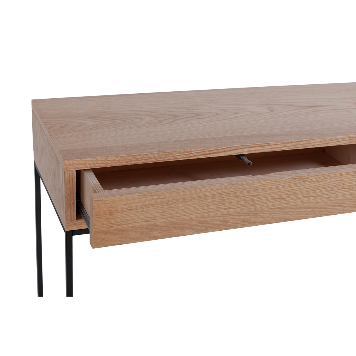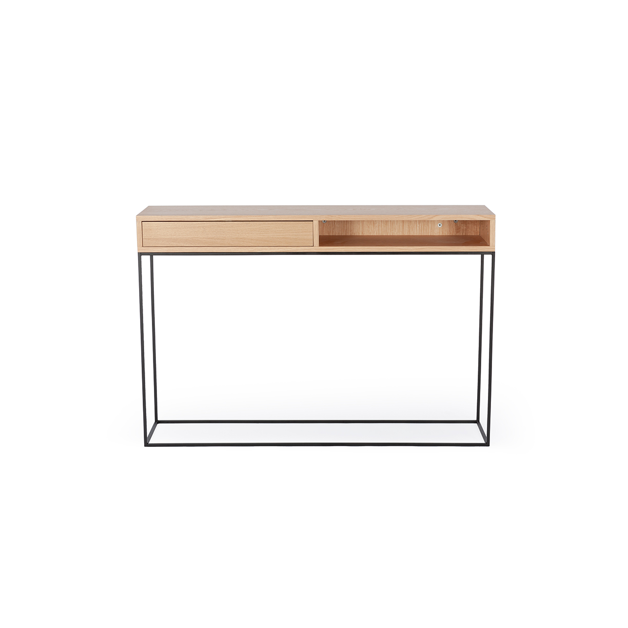 Nasza minimalistyczna konsola w wersji z szufladą, która dyskretnie pomieści zbędne dla oka drobne przedmioty. Dostępna w orzechu, eleganckim naturalnym i czarnym dębie.